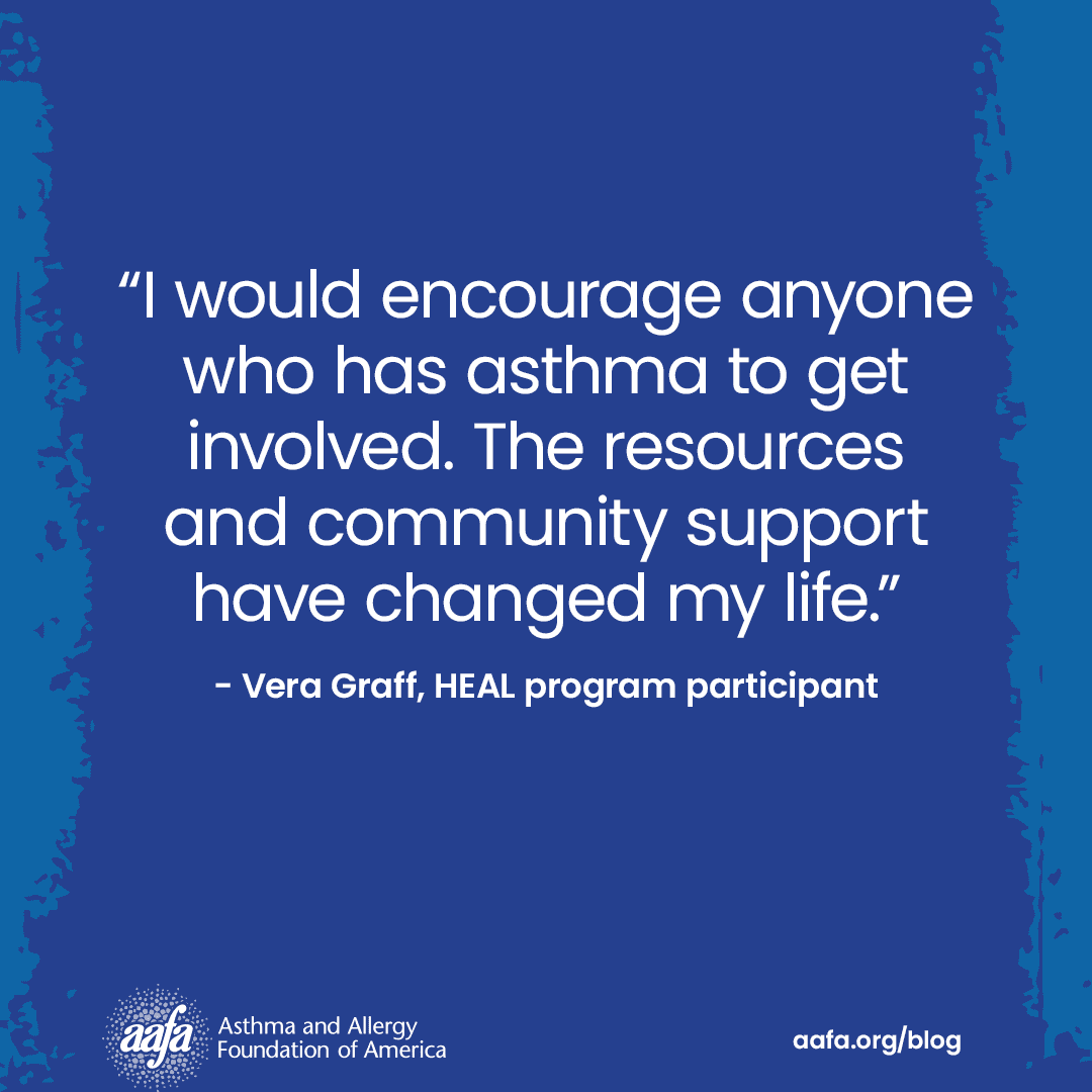 Vera found HEAL by way of the Chicago chapter of the American Lung Association and was connected with the Adults and Adolescents with Asthma Initiative (AAAI). Vera is now approaching 80 and living life with her chronic condition under control. She credits the resources she received through the program for helping with the final pieces of her asthma management puzzle.